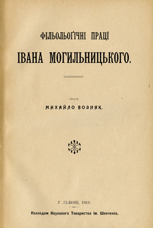 Filologiczni praci Iwana Mohylnyćkoho, oprac. M. Wozniak, Ukrajinśko-ruśkyj archyw, t. 5, Lwiw 1910