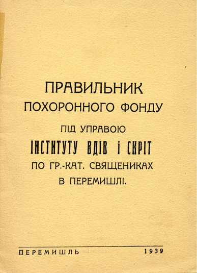 Prawylnyk pochoronnoho fondu pid uprawoju Instytutu Wdiw i Syrit po hr.-kat. swiaszczennykach, Peremyszl 1939